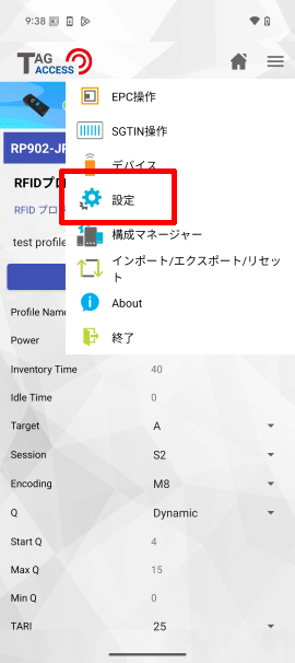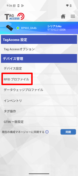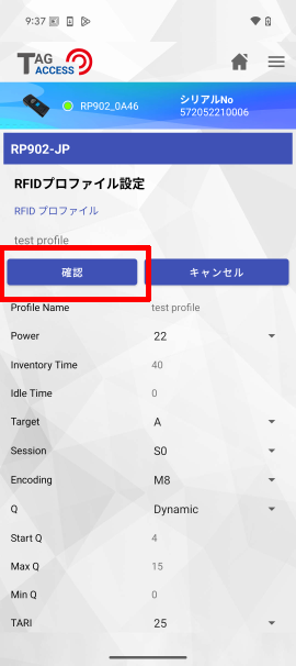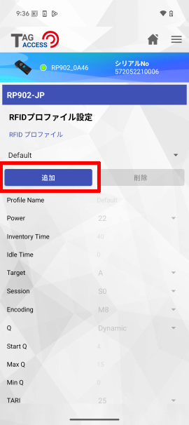 RFIDプロファイルが追加したプロファイルになっていることを確認します。