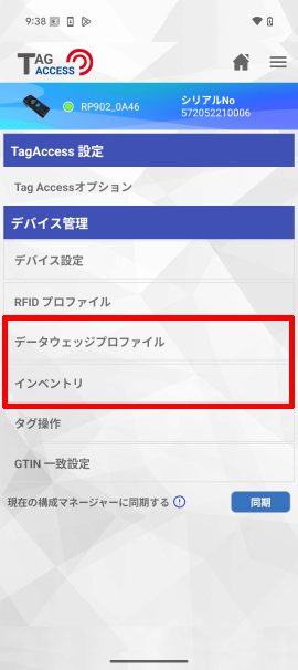 追加したプロファイルは、[]→[設定]→[データウェッジプロファイル]または[インベントリ]のプロファイルとして使用します。