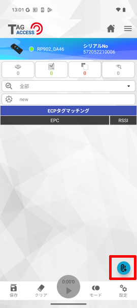 画面下部の[ ]をタップしてRFIDタグの読み取りを行います。