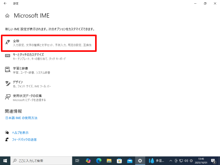 [全般]をクリックします。