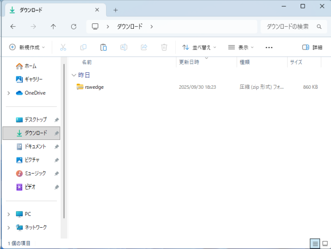 セットアップファイル送付依頼後に届いたメールに記載されているダウンロードリンクより[rswedge.zip]をダウンロードします。
