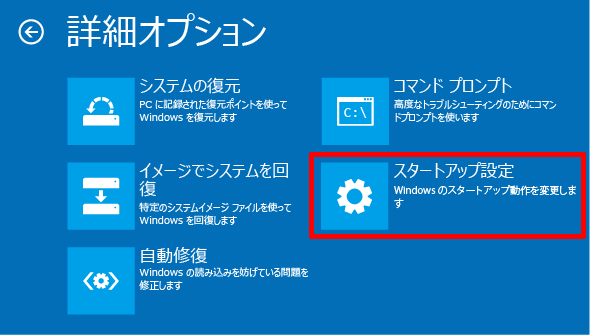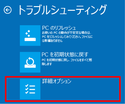 キーボードの[Shift]キーを押しながら、[スタート]→[電源]→[再起動]をクリックします。