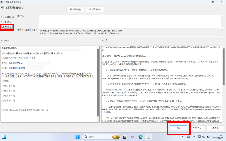 [無効]を選択し、[OK]ボタンをタップして保存します。