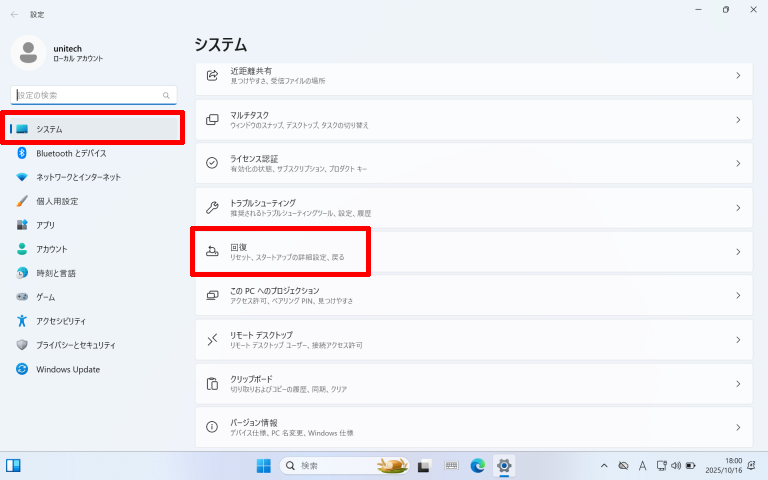 リカバリ完了後、Windowsの初期セットアップ画面が表示されます。画面の指示に従いセットアップを完了してください。