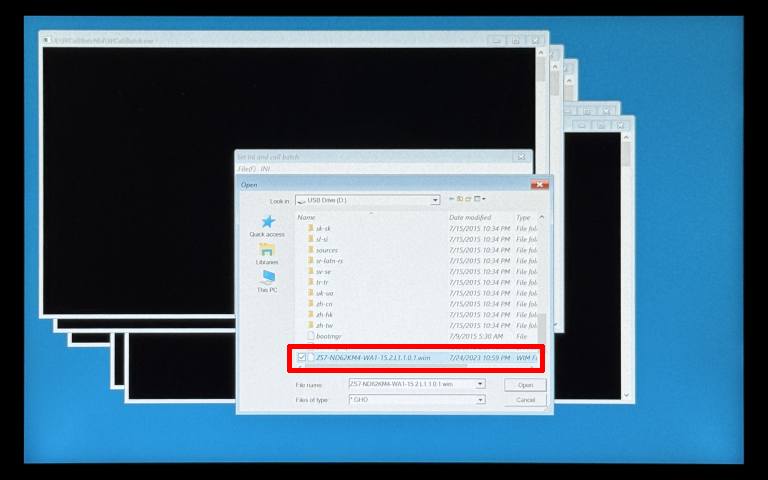[ZS7-ND62KM4-WA1-15.2.L1.1.0.1.wim]を選択し、[Open]ボタンをタップまたはクリックします。