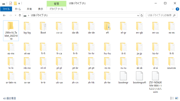 次の2つのファイルをダウンロードしUSBフラッシュメモリにコピーします。zipファイルは展開してからコピーしてください。wimファイルはそのままコピーしてください。